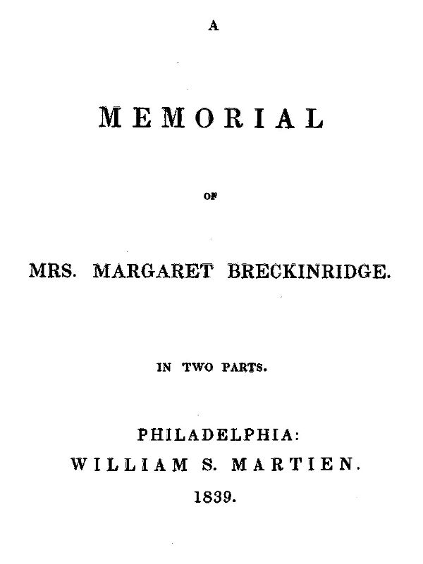 Title: A Memorial of Mrs. Margaret Breckinridge