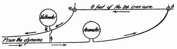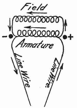 The school method of teaching the dynamo is to begin with the bar magnet and, through a series of thirty or forty lessons on fundamental principles, lead up to the dynamo, which is then presented, with considerable attention to detail, as a composite application of principles. This might be styled the synthetic method. He who teaches a boy out of school is pretty likely to reverse this order and pursue the analytic method. The class in school has very little influence in determining the order of procedure. The lone pupil with his questions almost wholly determines the order of procedure. Out of school no one has the courage to deny information to a hungry boy; in school we profess to put a ban upon information giving, and we do quite effectually deaden his sense of hunger. The school method rarely yields fruit which lasts beyond[vi] the examination period; on the other hand, a considerable number of boys have become electrical experts without the aid of a school. This book is the story of how my boy and I studied electricity together. We have had no other method than to attack our problems directly, and principles have come in only when they were needed.