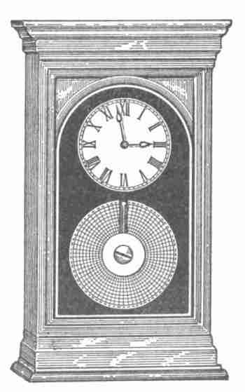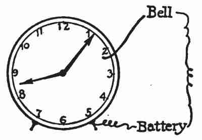 The cook may set this index at any desired degree, and the lamps will indicate when that degree has been reached. The thing to be baked is then put inside and the clock, illustrated in Fig. 175, is set so as to warn when the time is up.