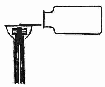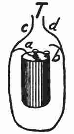 For detecting the electric waves which may be sent out from the spark gap of our automobile spark coil I shall ask you to help me prepare a special piece of apparatus. One boy may file this silver[317] ten-cent piece and another may file this nickel five-cent piece, each gathering the filings upon a piece of paper. A third boy may select a piece of glass tubing about one eighth of an inch in the inside diameter, and with a three-cornered file cut off a short piece, about one and a half inches long, and smooth the ends with a wet file. A fourth boy may select a piece of stout copper wire nearly as large as the bore of the glass tubing, and cut from it two pieces, each about two inches long. Wind one end of each of these with thread to make them fit snugly in the glass tubing.