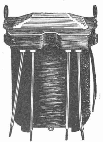 "But thanks to Oersted in Denmark in 1819 and Faraday in England in 1821 and Joseph Henry in Albany, N. Y., in 1827, we have learned to make exceedingly powerful magnets by sending a current of electricity in a whirl around the iron. This is the meaning of the coils of copper wire around iron cores in the dynamo, in electric bells, in telegraph sounders, in motors, etc., etc. To prevent the electric current from taking the shortest route, through the iron core or through the successive layers of copper wire, the iron core and the wire must be covered with something like wood or paper or cotton or silk or rubber—such things as electricity does not readily pass through—that is, insulating material.