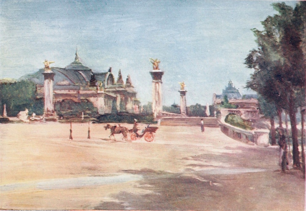 Paris is still the city in Europe where the things of the mind and of taste have most place, where the wheels of life run most smoothly and pleasantly, where the graces and refinements and amenities of social existence, l’art des plaisirs fins, are most highly developed and most widely diffused. There is something in the crisp, luminous air of Paris that quickens the intelligence and stimulates the senses. Even the scent of the wood fires as one emerges from the railway station exhilarates the spirit. The poet Heine used to declare that the traveller could estimate his proximity to Paris by noting the increasing intelligence of the people, and that the very bayonets of the soldiers were more intelligent than those elsewhere. Life, even in its more sensuous and material phases, is less gross and coarse,[4] its pleasures more refined than in London. It is{x} impossible to conceive the pit of a London theatre stirred to fury by a misplaced adjective in a poetical drama, or to imagine anything comparable to the attitude of a Parisian audience at the cheap holiday performances at the Français or the Odéon, where the severe classic tragedies of Racine, of Corneille, of Victor Hugo, or the well-worn comedies of Molière or of Beaumarchais are played with small lure of stage upholstery, and listened to with close attention by a popular audience responsive to the exquisite rhythm and grace of phrasing, the delicate and restrained tragic pathos, and the subtle comedy of their great dramatists. To witness a première at the Français is an intellectual feast. The brilliant house; the pit and stalls filled with black-coated critics; the quick apprehension of the points and happy phrases; the universal and excited discussion between the acts; the atmosphere of keen and alert intelligence pervading the whole assembly; the quaint survival of the time-honoured “overture”—three knocks on the boards—dating back to Roman times when the Prologus of the comedy stepped forth and craved the attention of the audience by three taps of his wand; the chief actor’s approach to the front of the stage after the play is ended to announce to Mesdames and Messieurs what in these days they have known for weeks before from the press, that “the piece we have had the honour of playing” is by such a one—all combine to make an indelible impression on the mind of the foreign spectator.