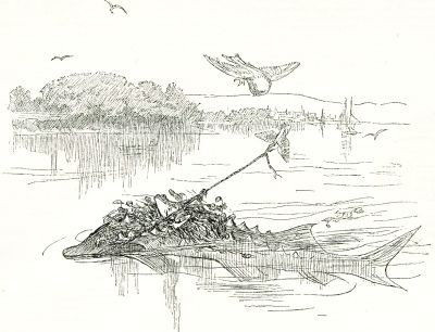 "There he goes!" cried one of the men, and sure enough the big fish had torn the net, and was free, and like a flash hundreds of shad followed through the hole he had made, so that scarcely fifty good fish were left in it to reward the fishermen's labors.