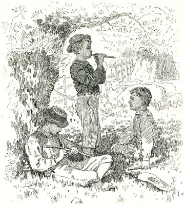 Near it, under the willows, two old fishermen were engaged in mending some badly torn nets. The boys wondered how they could with their hard horny hands do such delicate knotting and splicing.