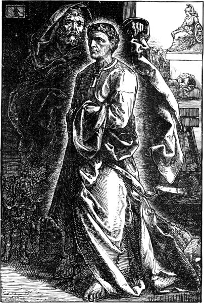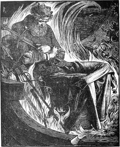 To add another eulogy of these works is hardly necessary at this moment, when their superb quality has provoked a still wider recognition than ever. Concerning the engraving of some Mr. Sandys complained bitterly, but of others, notably the Danae, he wrote in October 1880: 'My drawing was most perfectly cut by Swain, from my point of view, the best piece of wood-cutting of our time—mind I am not speaking of my work, but Swain's.' To see that the artist's complaint was at times not unfounded one has but to compare the Advent of Winter as it appears in a reproduction of the drawing (Art Journal, March 1884) and in The Quiver. 'It was my best drawing entirely spoilt by the cutter,' he said; but this was perhaps a rather hasty criticism that is hardly proved up to the hilt by the published evidence.