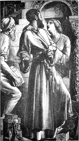 Several versions of this incident are current, but Mr. Arthur Hughes's account has not, I think, been published. It160 chanced that one day, during the time he was working in Rossetti's studio, the engraver called, and finding Rossetti was out, poured forth his trouble and stated his own view of the matter with spirit. For his defence, as he put it, much sympathy may be awarded to him. The curious drawings executed in pencil, ink, and red chalk, crammed with highly-wrought detail, that were to be translated into clean black and white, were, he declared, beyond the power of any engraver to translate successfully. How Mr. Hughes pacified him is a matter of no importance; but it is but fair to recollect that, even had the elaborate designs been executed with perfection of technique, any engraver must have needs encountered a task of no ordinary difficulty. When, however, the white coating had been rubbed away in parts, and all sorts of strokes in pen, pencil, and pigment added, it is not surprising that the paraphrase failed to please the designer. Although the drawings naturally perished in the cutting, and cannot be brought forward as decisive evidence, we may believe that the engraver spoilt them, and yet also believe that no craftsman who ever lived would have been absolutely successful.