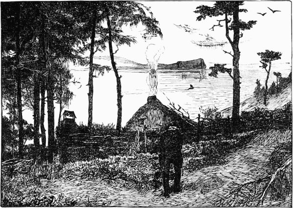 In 1870 Good Words contains four: The Mother and the Angel and three full-page designs, which rank among the most important of the artist's work in illustration, to Tennyson's Loves of the Wrens. This song-cycle, which the late Poet Laureate wrote expressly for Sullivan to set to music, was issued in 1870 in a sumptuous quarto. The publisher, Strahan, who at that time issued all Tennyson's work, had intended to include illustrations, and three were finished before the poet vetoed the project. These were cut down and issued with the accompanying lyrics in Good Words. Although the artist, vexed no doubt at their curtailment, and by no means satisfied with their engraving, does not rank them among his best things, few who collect his work will share his view. Despite the trespass beyond the limit of this book, it would be better to continue the list to date, and it is all too brief. In 1872 Good Words contains five of his designs, and Good Words for the Young twenty-four to Innocent's Island, and eight to Gutta-Percha Willie.