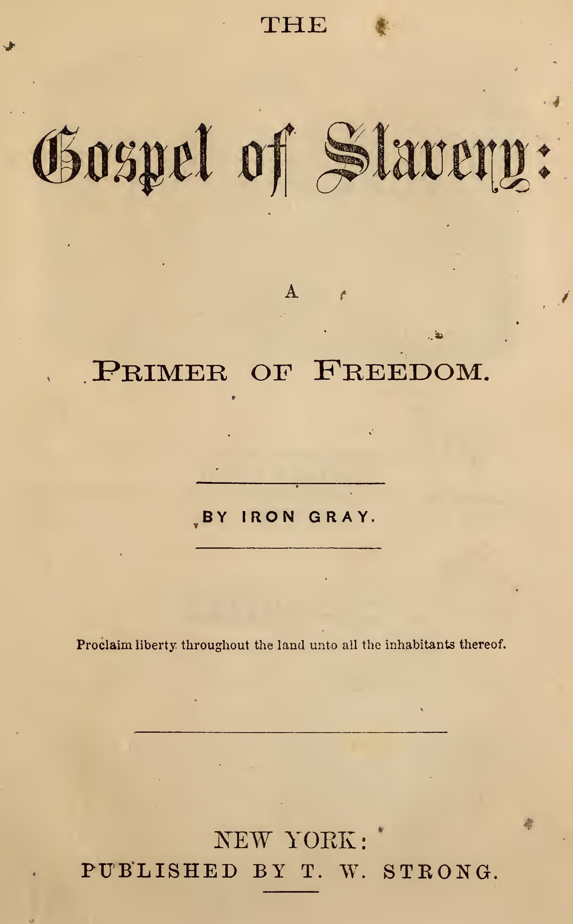 "Slavery and the Slave Trade pervaded every nation of civilized antiquity....The founder of the Jewish nation was a Slaveholder.... Greeks enslaved each other....The Slave-markets of Rome were filled with men of every complexion and every clime....It is from about the year 990 that regular accounts of the Negro Slave-trade exist."—Bancroft's United States, i. 159. Any Bible argument for Slavery must therefore except the black, if any color is to be excepted!