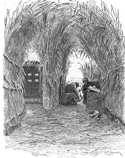 C'est tout au haut que se trouve la rue de l'Abreuvoir, qui, entre des murs soutenant le sol mouvant de jardins plantés d'arbustes, descend par un tracé sinueux sur le versant de Saint-Denis. Le quartier est assez désert, assez sauvage pour qu'on se croie à cent lieues de Paris. Cependant la grande ville est là, au-dessous, à quelques pas, tout autour au loin, et quand on ne l'aperçoit pas par des échappées de vues qu'ouvre tout à coup entre les maisons une rue faisant office de télescope, on entend son mugissement humain, sourd et profond comme celui de la mer, et dans ses fumées, de quelque côté que les apporte le vent, on sent passer son souffle et son odeur.