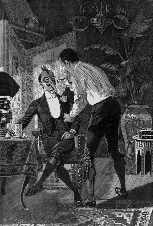 Exaspéré, Belmanières se demanda manifestement s'il devait assommer Jugu; seulement la réplique qu'il fallait pour cela ne lui vint pas à l'esprit; après un moment d'attente il se dirigea vers la porte avec l'intention de sortir, mais, rageur comme il l'était, il ne pouvait pas abandonner ainsi la partie, on l'accuserait de lâcheté, on se moquerait de lui lorsqu'il ne serait plus là; il revint donc sur ses pas: