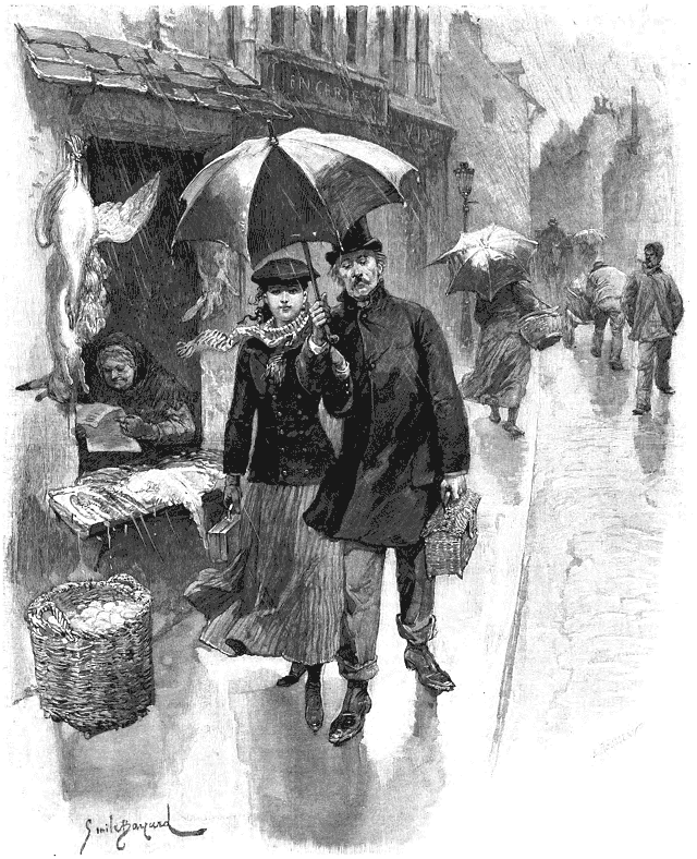 Mais il était arrivé un moment où les leçons paternelles ne suffisaient plus; il fallait se préparer à gagner sa vie, et que ce qui avait été jusque-là agrément devînt métier. Elle était entrée dans l'atelier, et chaque jour, par quelque temps qu'il fît, pluie, neige, verglas, elle avait dû descendre des hauteurs de Montmartre, par les chemins glissants ou boueux, jusqu'au passage des Panoramas. Longue était la course, plus dure encore. Son père la conduisait d'une main, la couvrant de son parapluie ou la soutenant dans les escaliers, de l'autre portant le petit panier dans lequel était enveloppé le déjeuner qu'elle mangerait à l'atelier: deux œufs dûrs, ou bien une tranche de viande froide, un morceau de fromage. Mais le soir, retenu bien souvent à son bureau, il ne pouvait pas toujours la ramener; alors elle revenait seule.