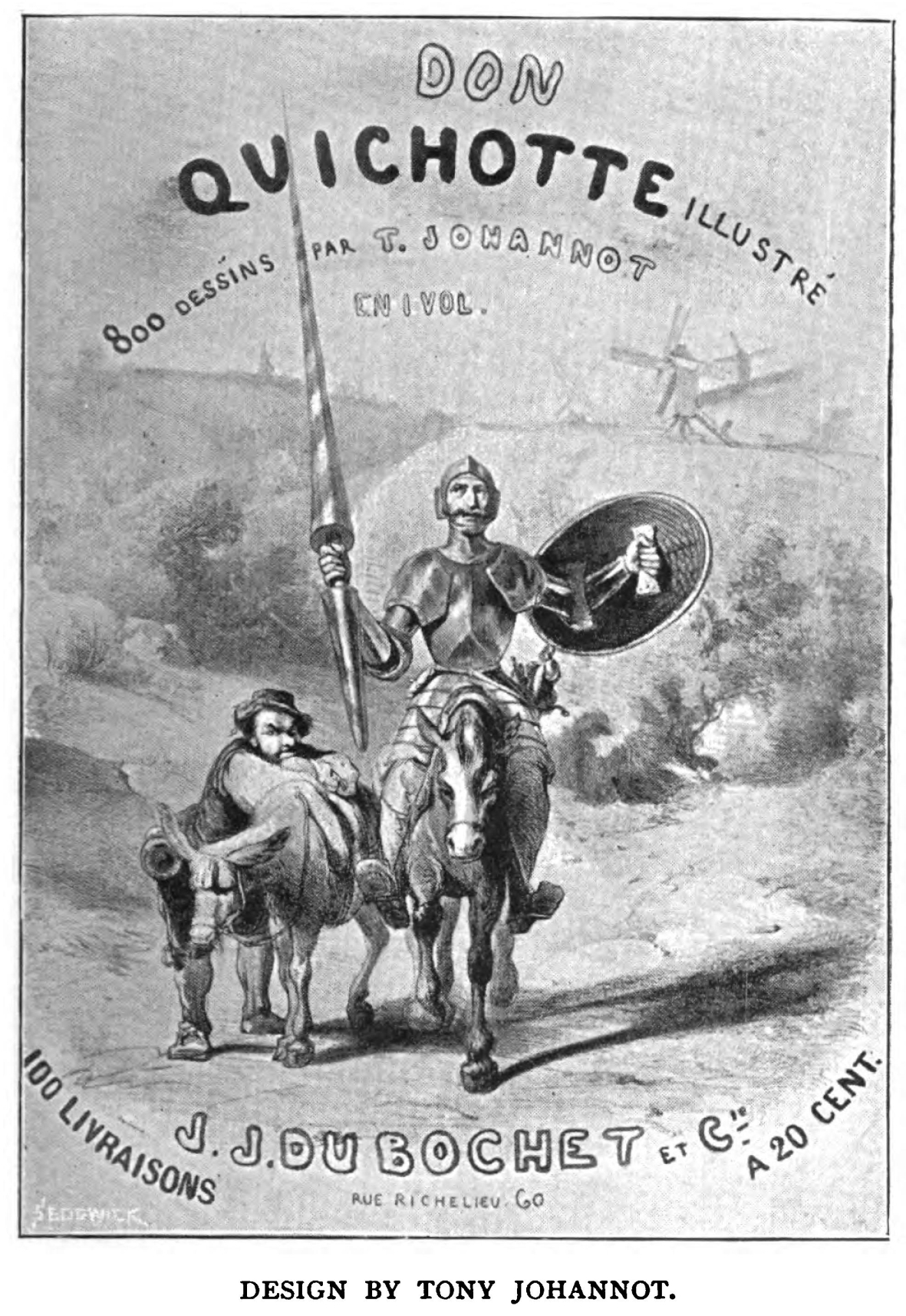 its period, insomuch as it is intensely grotesque, is the "Voyage ou il vous plaira," by Tony Johannot. Its central figures are a monstrous dwarf holding a lantern, a crouching dragon, and an immense notice-board. An affiche which is, perhaps, of