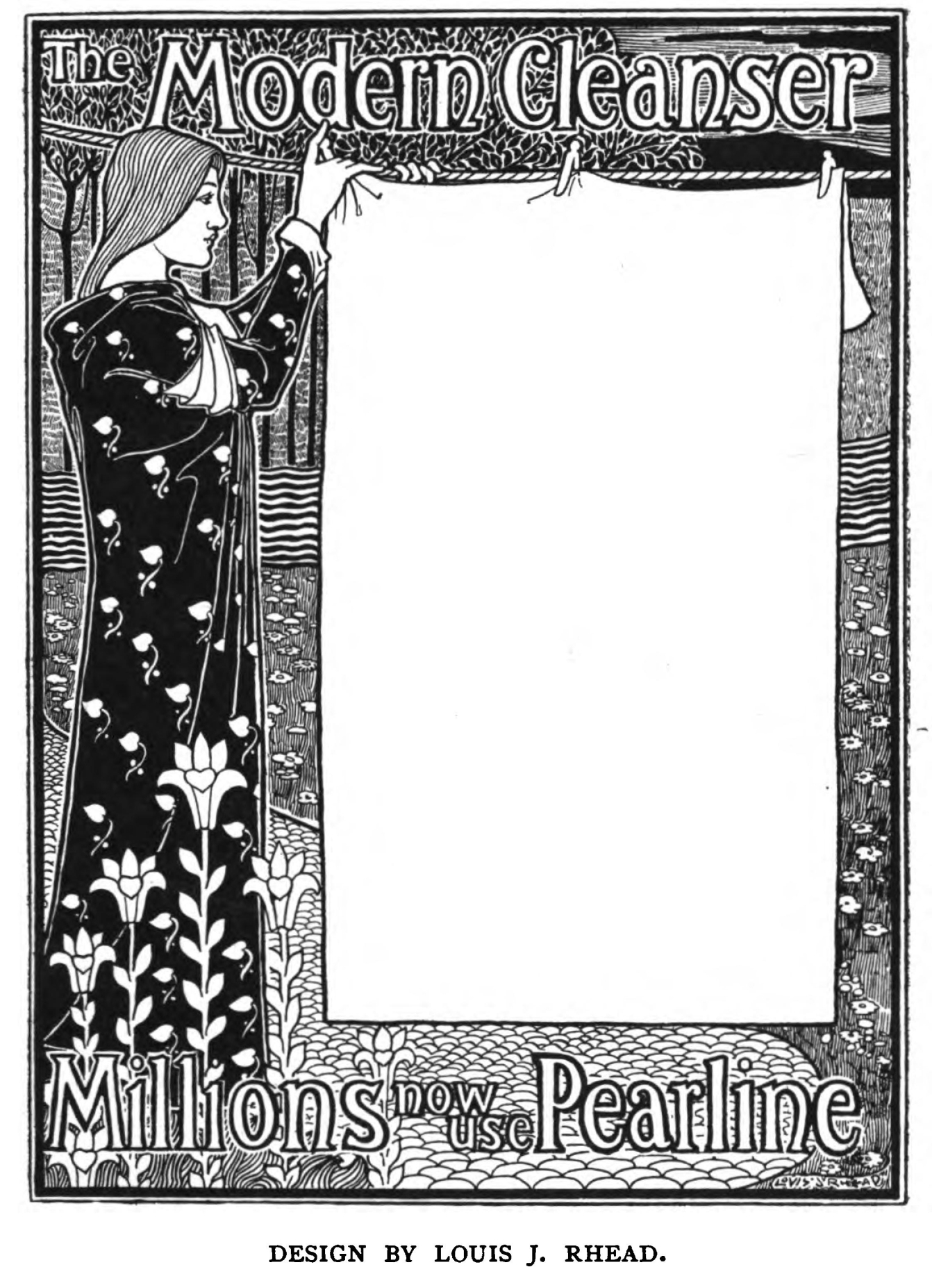 It would be merely foolish to pretend that the pictorial poster, looked at from the point of view of art, is of the same importance as a portrait by Velasquez or an etching by Rembrandt. Its aesthetic qualities have of necessity to be subordinated to its commercial qualities; the artist is the servant of the tradesman. His first business is not to achieve a decoration, but to call the attention of the man in the street to the merits of an article. He may be fantastic only in so far as his fantasy assists the advertisement; he must ever keep before his eyes the narrow object of his effort. The closest limits are set to his invention; it is not for him to do what he will, but rather to do what he must. Under such circumstances, it is, at the first blush, somewhat surprising that artists have condescended to the poster at all. The bounds of freedom in the cases of painting and of sculpture are, comparatively speaking, so wide that one is not unnaturally amazed that the artist of talent is willing to work within the strict limitations imposed on him in the production of a pictorial poster. And yet, after all, to the ingenious designer there is a certain fascination in the very strictness of these limits; the complexity of the problem allures him, and gives him the appetite for experiment. Moreover, if he believe that art is something more than a vague grace, a non-essential luxury, he is ever anxious to extend her domain, to make her empire universal. He believes it to be his mission to touch some ugly necessity, to inform it with art, and, in doing so, to adorn it. He is restless for new worlds to conquer, for fresh fields to occupy. His ideal is art everywhere, art in all. He would fain give style and grace even to the paraphernalia of commerce: the necessities of trade shall not be hideous if he can make them otherwise. And so it happens that he is willing, nay eager, to turn his attention to the poster, with the result that the hoarding becomes an interesting, even a charming, gallery of designs. What was one of the most hideous of human inventions is transformed into a delight to the eyes. Colour and interest are added to the street; the gay and joyous take the place of the dull and ugly.
