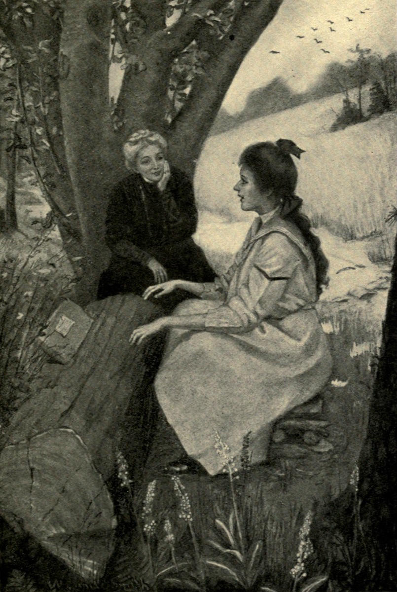 It was one afternoon in late summer that Nan, having been called Sharp Corner more times than her temper would amiably permit, had gone to a haunt much favored by herself. This was at the extreme edge of the place, a little nook where the orchard ended and a few stunted pines lapped over into the next field. The field had not been cultivated for some time and was overgrown with weeds and a young growth of pine and fir trees. It was rather a desolate spot, for the nearest house was hidden in summer by a thick grove, and the slope of the hill prevented the road from being seen from this point.