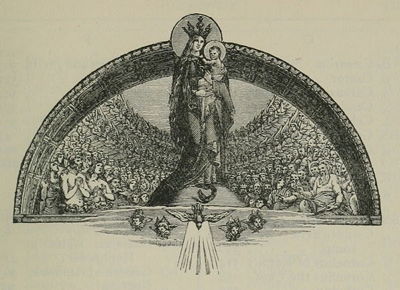 At first, on account of the idolatry which surrounded them, the early Christians did not deem it prudent to introduce images into their churches. Idolatry was so prevalent, that the first lesson they had to insist upon to the heathen, was the omnipresence of God; but when heathenism was conquered, the danger of idolatry ceased, and the peril was in the other direction; men began to insist on the infinity of the essence of the Godhead, and to deny the possibility of His becoming local by incarnation. They were ready to admit that Christ was inspired with a {418} divine afflatus, but not that He was very and eternal God. Then, at once, it became necessary for the Church to use her every effort to impress on men's minds and hearts the truth that God had become very man, of the substance of His mother. Then pictures and images were introduced into churches. We must remember that the Church, to defend the truth, had to assume successively opposite positions, for the truth was double,—if we are to understand how she first opposed images, and then defended them. She did not contradict herself, her attitude was forced upon her, to maintain a two-fold truth.