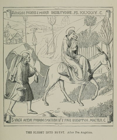 By the robbery of the nest in the tree, the painter ingeniously points to the Massacre of the Innocents as to the cause of the Flight into Egypt.