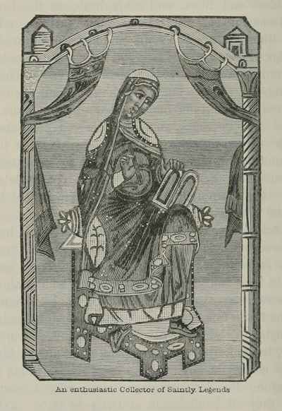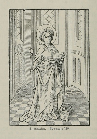The Abbey of Maubeuge, in France, on the Sambre, near the confines of Belgium, was founded by S. Aldegund (Jan. 30th), sister of S. Waldetrudis (April 9th), wife of S. Vincent, a count, (July 14th), and aunt of the two holy daughters of this pious couple, S. Aldetrudis and S. Madelbertha (Sept. 7th), who succeeded Aldegund as abbesses of Maubeuge. Aldetrudis was brought up by her saintly parents to tread the path of light and life from her earliest infancy. She chose the religious life, and entered the house founded and governed by her aunt, whom she succeeded. One little incident of her life has retained its hold on the popular memory, and is sometimes represented in art. {414} Determined not to waste the precious wax from the altar and other candles, Aldetrudis melted up all the scrapings, drippings, and ends of the tapers in a large pot on the fire, but, when it was melted, the wax caught fire. Aldetrudis, thinking there was danger from the blaze, and not wishing to lose the wax, boldly caught the pot from the fire with both her hands, and placed it on the stone floor. The legend adds that though some of the melted wax ran over her hands she was not burnt.