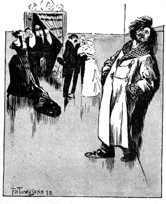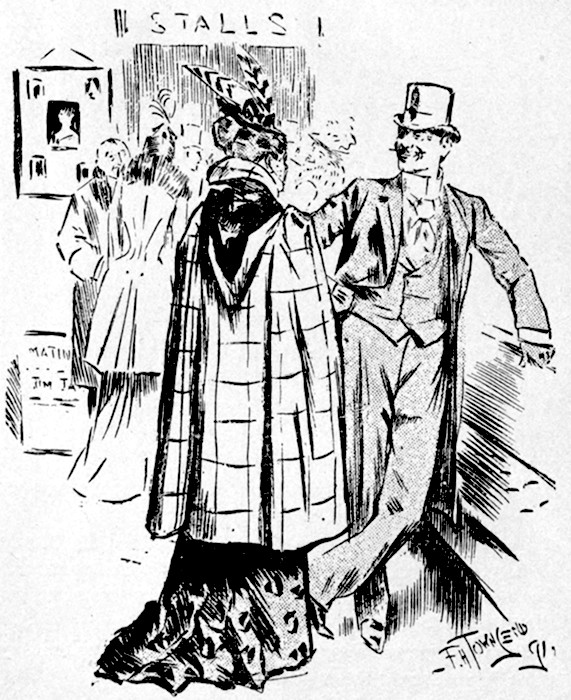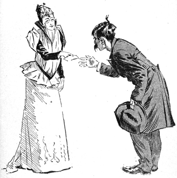 Besides the friends of the happy pair, nearly all the candidates were present at the inaugural soirée of the Old Maids' Club. Not quite all—because Lillie who was rapidly growing conventional did not care to have Clorinda Bell even accompanied by her mother, or by her brother, [pg 330] the Man in the Ironed Mask. Nor did she invite the twins, nor the osculatory Alice. But she conquered her prejudices in other instances, and Frank Maddox, the art critic, came under the convoy of the composer, Paul Horace, and Miss Mary Friscoe was brought by Bertie Smythe. The Writers' Club also sent Ellaline Rand, and an account of the proceedings appeared in the first number of the Cherub. The "Princess" was brought by Miss Primpole, and Captain Athelstan and Lord Arthur came together in unimpaired friendship. Eustasia Pallas and her husband, Percy Swinshell Spatt, both their faces full of the peace that passeth understanding, got a night off for the occasion and came in a hansom paid for out of the week's beer-money. Turple the magnificent, who had seen them at home in the servants' hall, was outraged in his deepest instincts and multiplied occasions for offering them refreshments merely for the pleasure of snorting in their proximity. The great Fladpick (Frank Gray), accompanied by his newly-won bride, Cecilia, made the evening memorable by the presence of the English Shakespeare, Guy Fledgely brought Miss Sybil Hotspur, and his father, the baronet, was under the care of Miss Jack. The lady from Boston wired congratulations on the success of the Club from Yokohama whither she had gone to pick up lacquer-work. Poor Miss Summerson, the lovely May, and the victim of the Valentine were a triad that was much admired. Miss Fanny Radowski, whose Oriental loveliness excited much attention, came, with Martin. Winifred Woodpecker was accompanied by her mother, the resemblance between the two being generally remarked, and Miss Margaret Linbridge seemed to afford Richard Westbourne copious opportunities for jealousy. Even Wilkins was there with his Diana, in an unprofessional capacity, Lillie having relented towards her interviewer on learning that she had been really engaged to Silverplume once and that she had not [pg 331] entirely drawn on the stores of journalistic fancy. Silverplume himself was there, unconscious to what he owed the invitation, and paying marked attention to the unattached beauties. Miss Nimrod promenaded the rooms on the arm of the millionaire. She had improved vastly since she had become effeminate, and Lillie felt she could put up with her, now she would not have to live with her. Even Silverdale's aunt, Lady Goody-Goody Twoshoes could find no fault with Nelly now.
