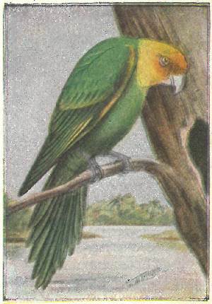 With the exception of the Thick-Billed Parrot, which is very rarely found in southern Arizona, these are the only members of the Parrot family in the United States. They were once abundant throughout the southern states, but are now nearly extinct. They are found in heavily timbered regions, usually along the banks of streams, where they feed upon seeds and berries.