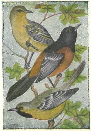 How Can We Attract Birds About Our Homes?—Many birds prefer to live in the vicinity of houses, and they soon learn where they are welcome. Keep your premises as free as possible from cats, dogs, and especially English Sparrows, and other birds will come. Robins, Orioles, [10] Kingbirds, Waxwings and a few others will nest in orchard trees, while in dead limbs or bird boxes will be found Bluebirds, Wrens, Swallows, Woodpeckers, Chickadees, etc.