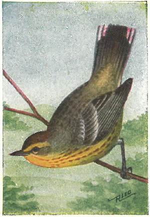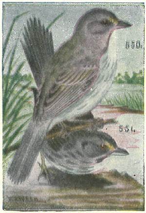 We should also advise every one to keep a notebook, apart from the Bird Guide. At the end of the season you can write neatly with ink on the top of the pages of the Guide, the dates of the earliest arrivals and latest departures of the birds that you have recorded. If you see a bird that you do not recognize, make the following notes, as completely as possible: Length (approximately); any bright colors or patches; shape of bill, whether most like that of a finch, warbler, etc.; has it a medium or superciliary line, eye ring, wing bars, or white in the tail; what are its notes or song; does it keep on or near the ground, or high up; are its actions quick or slow; upon what does it appear to be feeding; is it alone or with other birds, and what kind; where was it seen, in dry woods, swamp, pasture, etc.; date that it was seen. With this data you can identify any bird, but usually you will need only to glance over the pictures in the Bird Guide to find the name of the bird you have seen.