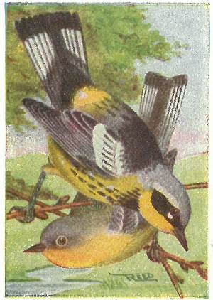 How Can We Protect the Birds?—Nearly all states have fairly good game laws, which, if they could be enforced, would properly protect our birds from man, but they cannot be; if our boys and girls are educated to realize the economic value of the birds, and are encouraged to study their habits, the desire to shoot them or to rob them of their eggs will be very materially lessened. It is a common practice for some farmers to burn their land over in the Spring, usually about nesting time. Three years ago, and as far back of that as I can remember, a small ravine or valley was teeming with bird life; it was the most favored spot that I know of, for the variety and numbers of [8] its bird tenants. Last year, toward the end of May, this place was deliberately burned over by the owner. Twenty-seven nests that I know of, some with young, others with eggs, and still others in the process of construction, were destroyed, besides hundreds of others that I had never seen. This year the same thing was done earlier in the season, and not a bird nested here, and, late in Summer, only a few clumps of ferns have found courage to appear above the blackened ground. Farmers also cut off a great many patches of underbrush that might just as well have been left, thus, for lack of suitable places for their homes, driving away some of their most valuable assistants. The cutting off of woods and forests is an important factor in the decrease of bird life, as well as upon the climate of the country.