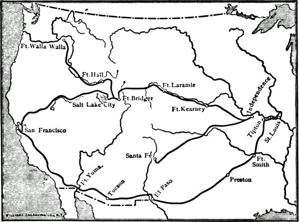 The classic account of traffic on the plains is Josiah Gregg, Commerce of the Prairies, or the Journal of a Santa Fé Trader (many editions, and reprinted in Thwaites); H. M. Chittenden, History of Steamboat Navigation on the Missouri River (N.Y., 1903), and The American Fur Trade of the Far West (N.Y., 1902), are the best modern accounts. A brilliant sketch is C. F. Lummis, Pioneer Transportation in America, Its Curiosities and Romance (McClure's Magazine, 1905). Other works of use are Henry Inman, The Old Santa Fé Trail (N.Y., 1898); Henry Inman and William F. Cody, The Great Salt Lake Trail (N.Y., 1898); F. A. Root and W. E. Connelley, The Overland Stage to California (Topeka, 1901); F. G. Young, The Oregon Trail, in Oregon Hist. Soc. Quarterly, Vol. I; F. Parkman, The Oregon Trail.