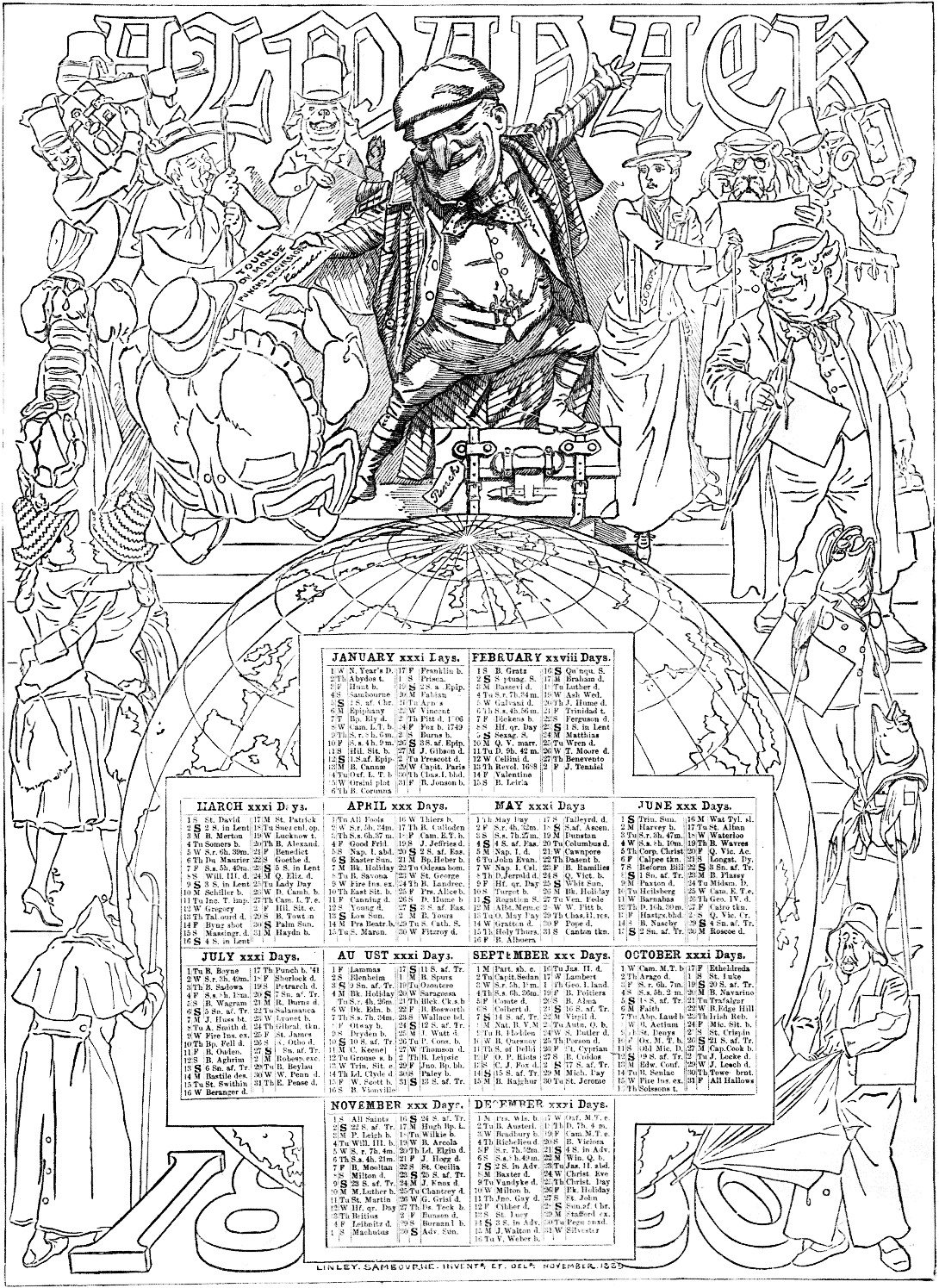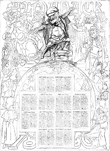 The Project Gutenberg EBook of Punch's Almanack for 1890, by Various This eBook is for the use of anyone anywhere at no cost and with almost no restrictions whatsoever. You may copy it, give it away or re-use it under the terms of the Project Gutenberg License included with this eBook or online at www.gutenberg.org Title: Punch's Almanack for 1890 Author: Various Release Date: May 21, 2014 [EBook #45710] Language: English Character set encoding: ISO-8859-1 *** START OF THIS PROJECT GUTENBERG EBOOK PUNCH'S ALMANACK FOR 1890 *** Produced by Punch, or the London Charivari, Malcolm Farmer, Lesley Halamek and the Online Distributed Proofreading Team at http://www.pgdp.net