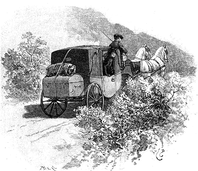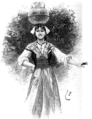 La vie est longue et les affaires sont brèves, sous ce beau ciel chargé d'indolence. Aussi l'étranger à qui prendrait la fantaisie de se promener par la ville vers sept heures du matin ne rencontrerait-il dans les rues silencieuses que quelques voitures de maraîchers se dirigeant nonchalamment vers le marché du Campo di Fiore, devant le palais Farnèse, où loge superbement l'ambassade de France près le Quirinal. Bien amusantes, ces charrettes contadines, longues, plates et étroites, peintes en bleu vif, avec, accrochée de biais sur le brancard gauche, une hotte faite de cercles de tonneau recouverts de peaux de chèvre, doublée d'oripeaux qui seraient éclatants s'ils n'étaient moins crasseux. C'est le cabriolet où s'assied le conducteur dans son costume de modèle pour tableaux romantiques, veste et culotte de drap gros bleu, ceinture de laine rouge ou jaune, feutre pointu, foulard d'un vert à faire grincer les yeux, les jambes entortillées de bandes de toile blanche, par-dessus lesquelles s'entrecroisent les cothurnes de la sandale en peau de vache.