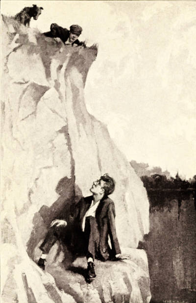 By this time, the red-headed boy had drawn himself to the top of the fence. Almost before she had finished[Pg 2] explaining, he had dropped on the other side. Scrambling up to the horizontal bar beside her, he squinted thoughtfully at the imprisoned foot, wedged between the tree-trunk and the wooden strip that held the end of the bar.