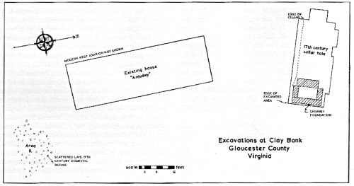 The site lay on the north bank of the York River on rising ground immediately west of Clay Bank landing. Little or nothing was known about the property in the colonial period and it was apparently identified on no known maps or land plats. However, the fact that it was adjacent to part of the 18th-century Page family plantation (whose mansion house had been included in previous archeological work[1]) and because the Clay Bank site gave promise of yielding information regarding domestic life in the late 17th century, the author decided to undertake limited excavation in the area of the structure.