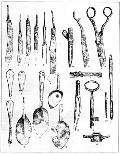 The single clue pointing to a Porteus family association, the latten spoon with its presumed Scottish mark, hardly merits any more serious consideration than the cannonball. Somewhat more tenable, however, may be the suggestion furnished by two artifacts, that the cellar hole was in the vicinity of a cooper's workshop. The objects in question were a "chisel" (fig. 14, no. 7) used specifically for driving down barrel hoops, and a race knife (fig. 12, no. 3), a tool frequently used by coopers to mark the barrels. No documentary evidence has been found to indicate the presence of a cooper in the Second Precinct of Petsworth Parish in the late 17th century though the Vestry Book does contain an entry for October 4th, 1699, ordering an orphan to be indentured to a cooper in King and Queen County.[20]