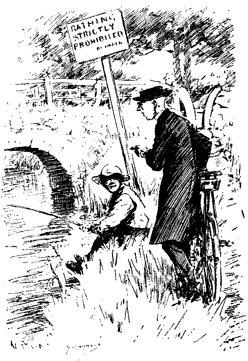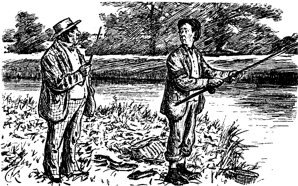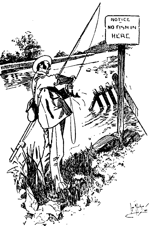 Angler (after landing his tenth—reading notice). "The man who wrote that sign couldn't have been using the right bait!"