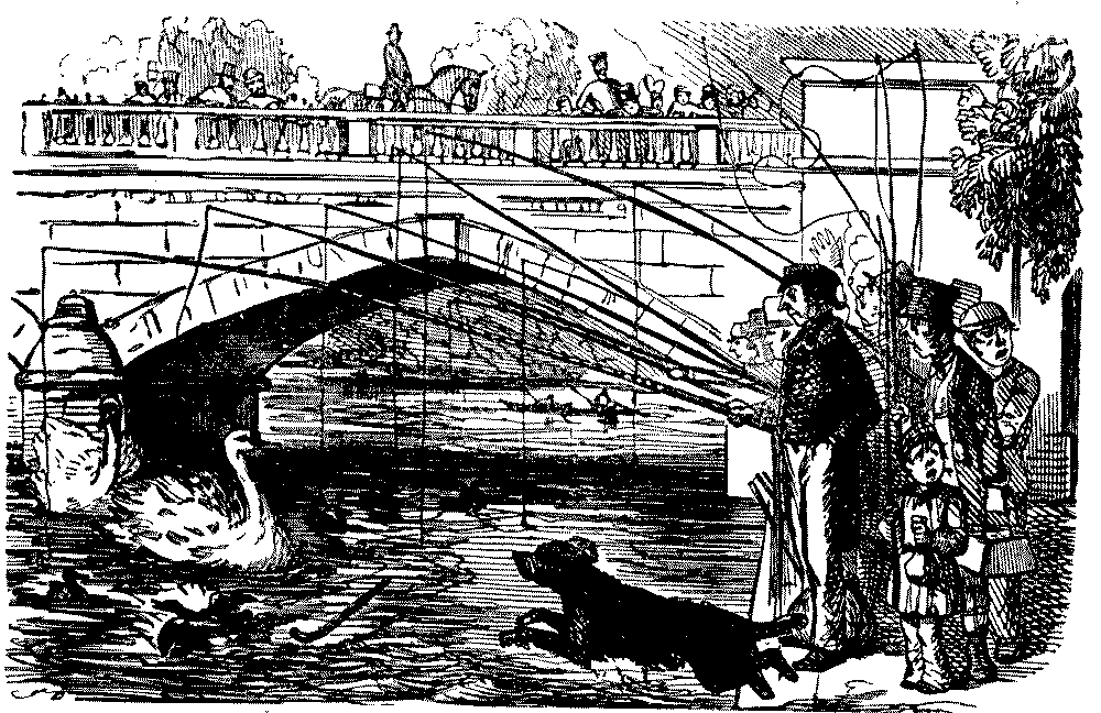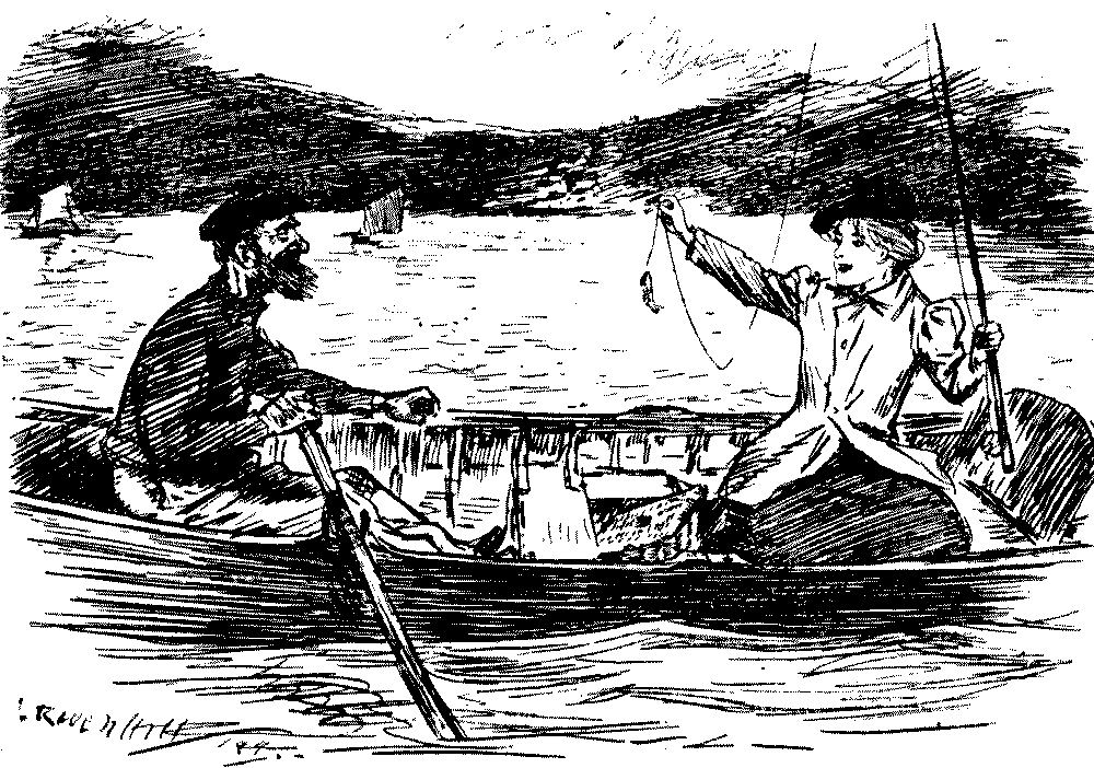 Diminutive Nursemaid (to angler, who has not had a bite for hours). "Oh, please, sir, do let baby see you catch a fish!"