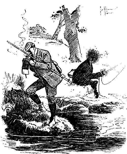 Angler. "Hush! Keep back! Keep back! I had a beautiful rise just then; shall get another directly."