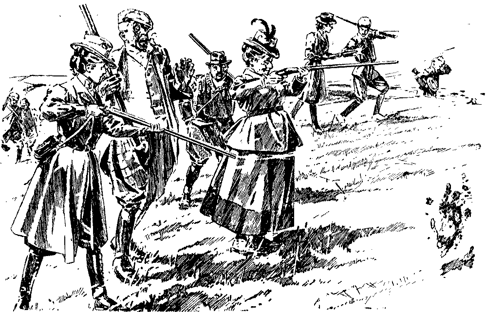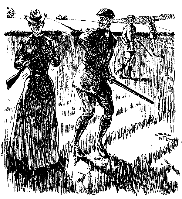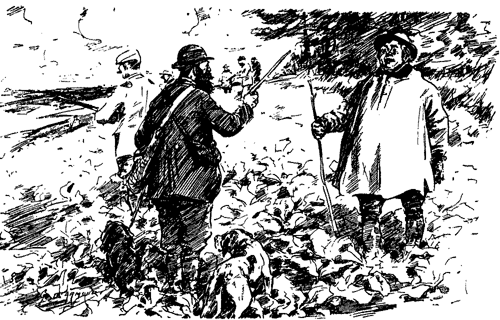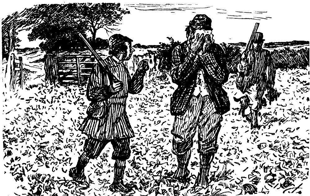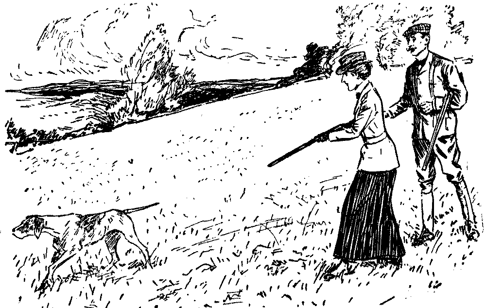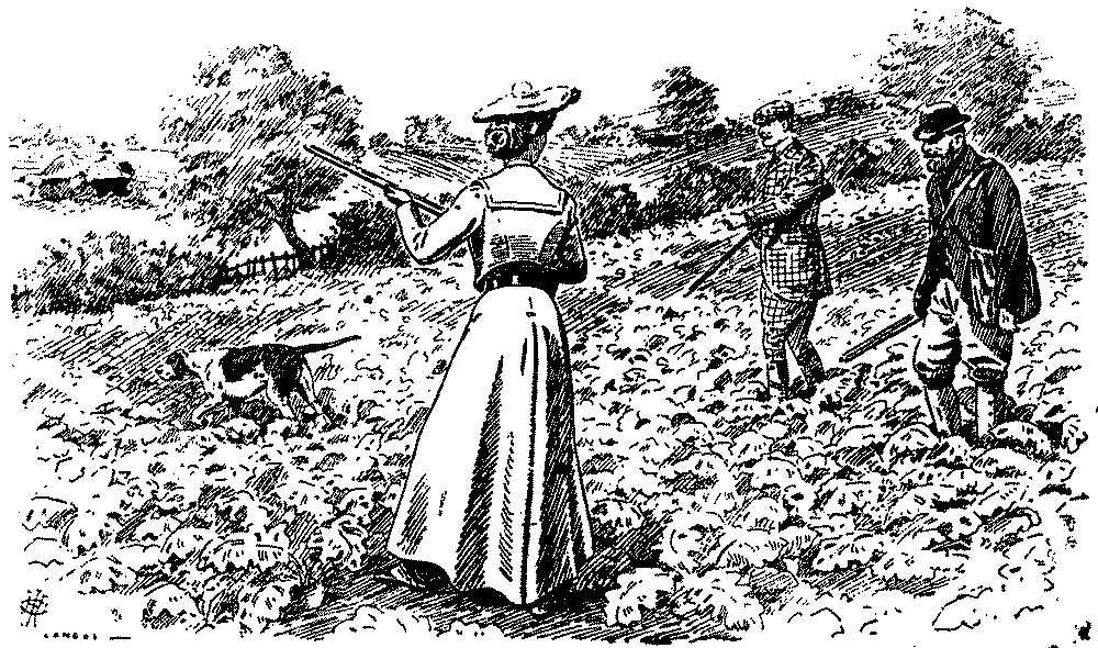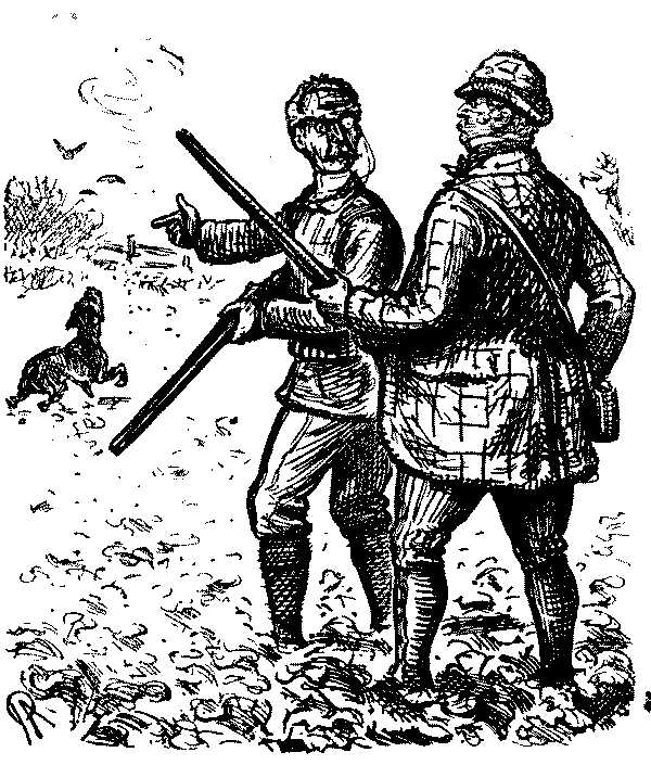 He gets as much laughter out of those who handle the gun. The infinite variety of jokes he cracks about the bad shot, the man who can't hit the birds, or is always hitting the dogs or his companion guns, is amazing. He does not spare the lady shooter, and jests of the peril in which the rest of the field are placed when she is out after the birds or rabbits; and he gets a good deal of fun out of the Frenchman's alien notion of sport.