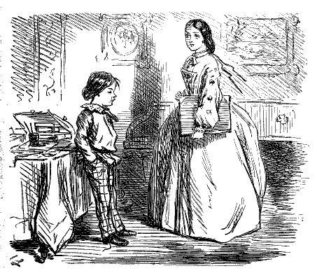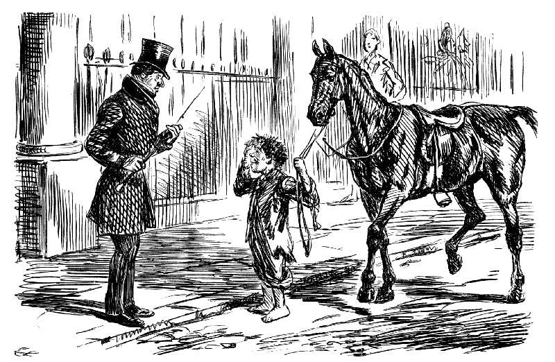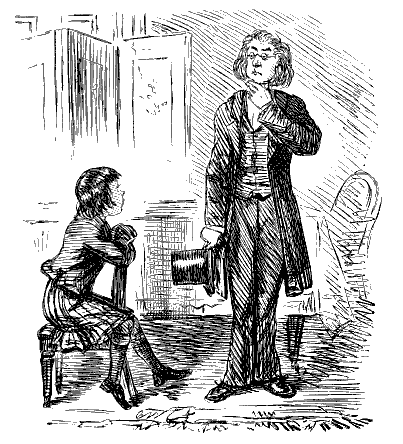 Child. "WELL, THEN, I'M ONE OF THOSE BOYS WHO CAN ONLY BE MANAGED WITH KINDNESS—SO YOU HAD BETTER GET SOME SPONGE-CAKES AND ORANGES AT ONCE!"