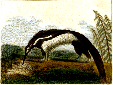 The opossum belongs to the south parts of the new world, but he does not, like the armadillo, seem confined to the hottest climates, for he is found not only in Brasil, Guiana, and Mexico, but also in Florida, Virginia, and other temperate regions of this continent. They are very common in these countries, as they bring forth often, and most authors say four or five, others six or seven, at a time. Marcgrave affirms, that he has seen six young ones alive in the pouch of the female; they were about two inches in length, were very nimble, and went in and out of the pouch many times in a day. They are very small when just brought forth: some travellers say they [245] are not bigger than flies when they go out of the womb into the pouch, and attach themselves to the teats. This fact is not so much exaggerated as might be imagined, for we have seen in an animal, whose species is somewhat like that of the opossum, young ones sticking to the teats not bigger than beans; and it is not improbable, that, in these animals, the womb is only the place of conception and first formation of the fœtus, whose unfolding is completed in the pouch. No one has observed the time of their gestation, which we think is shorter than in any other quadruped; and as this early exclusion of the fœtus is a singularity in nature, we wish those who have an opportunity of observing the opossums in their native country would contrive to discover how long the females go with young, and how long the young remain attached to the teats. This observation is curious in itself, and may become useful, in pointing out some means of preserving the lives of children born before their natural period.