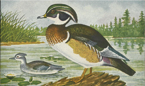 In shape and motions the loons very much resemble the grebes, except in size, being much larger. The common loon is the most beautiful of them all, having a velvety black iridescent head with slashes of white on the throat and neck and spots of white on the wings and back.