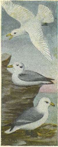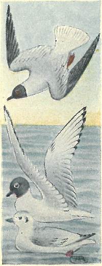The little Snow Gull, as it is often called, in the breeding season is entirely white; the bill is tipped with yellow and there is a red ring about the eye.