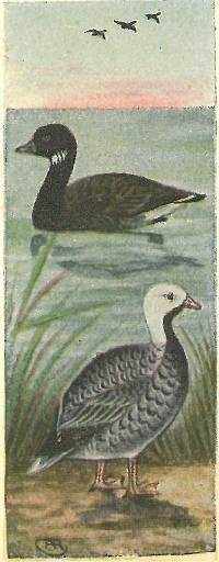 Nest.—Of grasses and seaweed, on the cliffs in the Arctic regions. Three grayish buff eggs are laid marked with brown and black (2.30 × 1.70).
