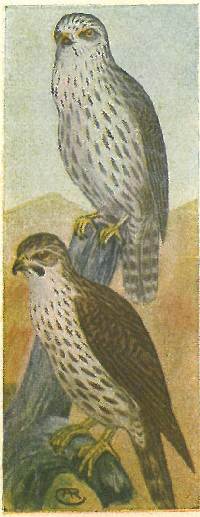 Nest.—On almost inaccessible cliffs, made of sticks, moss and seaweed, making the interior cup-shaped, to hold the two or three eggs, which are buffy brown or grayish, spotted with darker shades of brown (2.20 × 4.70).