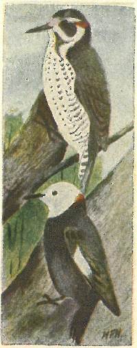Range.—Pacific coast region, from British Columbia to southern California. These are similar to the White-breasted bird of the east. Unlike the above, although these are tree climbers, they are as often found coming down the tree as climbing up. They build in cavities of various kinds of trees, laying five or six white eggs, quite heavily marked with brown and lilac (.80 × .60).