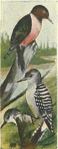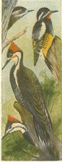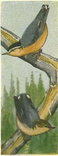 Range.—North America, breeding in the northern part of the United States and northward. Like the former, these are great acrobats, looking into every crevice of the bark in search of their supply of food, caring little whether they are going up or down in their search. After the breeding season these birds are often found in flocks about the coniferous trees, and appear to be very sociable, keeping up a continuous “yank, yank,” among themselves. They have no other song.