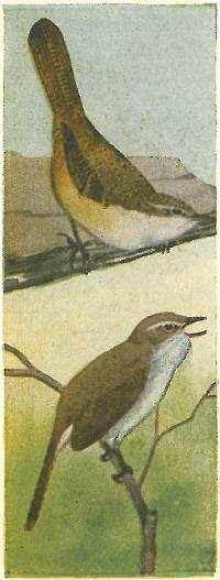 Range.—Rocky Mountain region, from British Columbia to Arizona. Tail is much lighter than above, and bird larger. Their habits in home life are the same, this bird having the stronger and sweeter voice of the two (not illustrated).