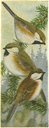 Range.—Northwest coast, from British Columbia to Oregon. These lively little birds are willing to make friends with almost anyone, and will get so tame that they will take pieces of suet from the hand. Their well known call of “dee, dee, dee” often repeated, is a cheerful sound, but their other note of “phoe-be,” or, as it seems to me they say “great-way,” is rather mournful and suggests that they are tired and have a “great-way” yet to go. They build in old stumps, usually near the ground, lining the cavity with grass, hair and plant down, in which they deposit from five to eight white eggs, spotted with brown (.60 × .45).