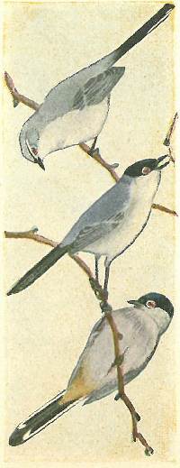 Range.—Western United States, breeding in northern Colorado and California. These birds in their actions somewhat resemble the Redstart, with their long tail, and quick flights into the air for insects and back again to the same twig, possibly near where their nest is placed. They build one of the prettiest of nests, very deep and cup-shaped, and on the top of some moss-covered limb at twenty to forty feet from the ground. Making the nest from plant down and moss, completely covered with lichens, so that it resembles a large knot on the limb, much like the nest of the Ruby-throated Hummingbird. Four or five dull white eggs, spotted with brown (.58 × .45).