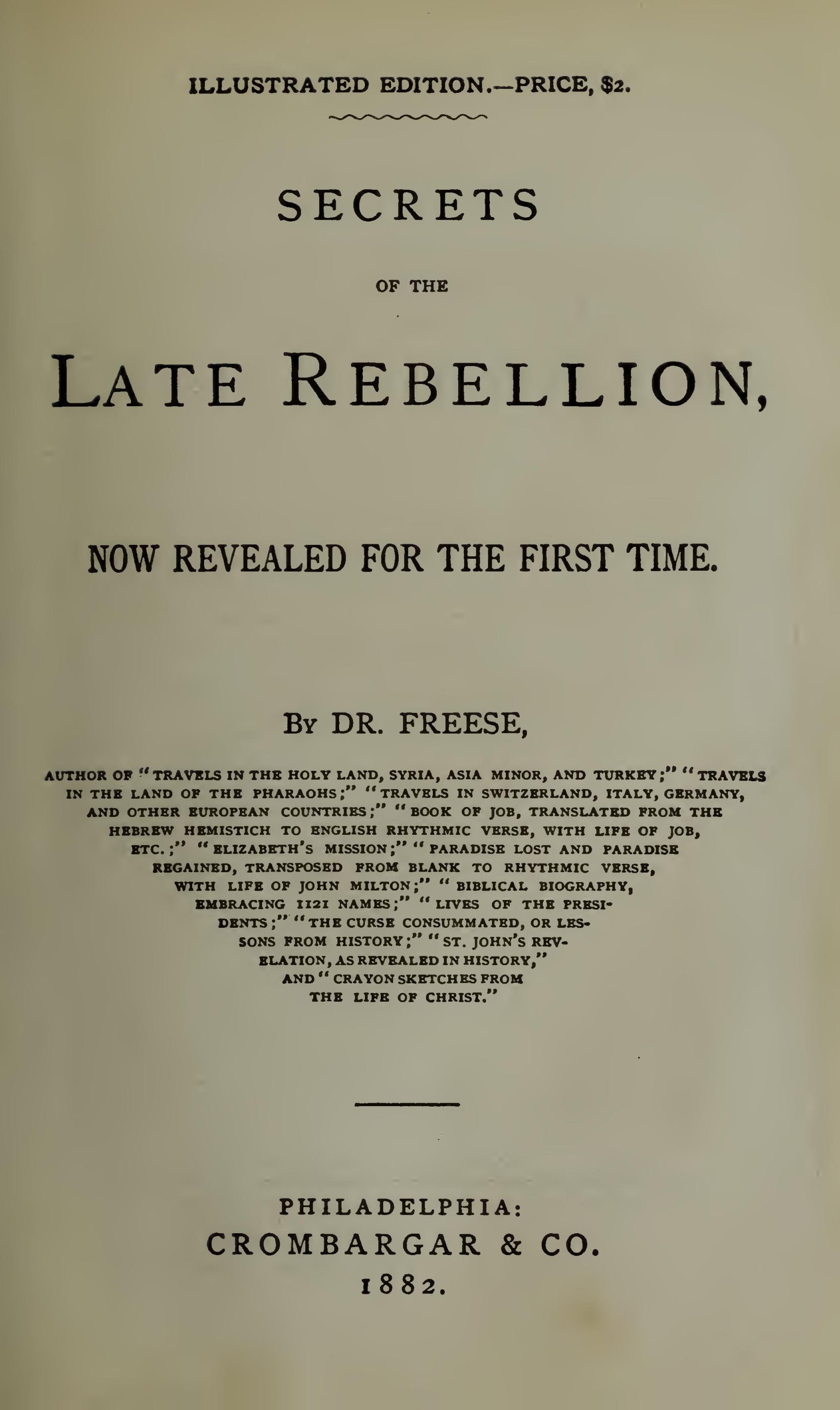 The Project Gutenberg EBook of Secrets of the Late Rebellion, by J. R. Freese