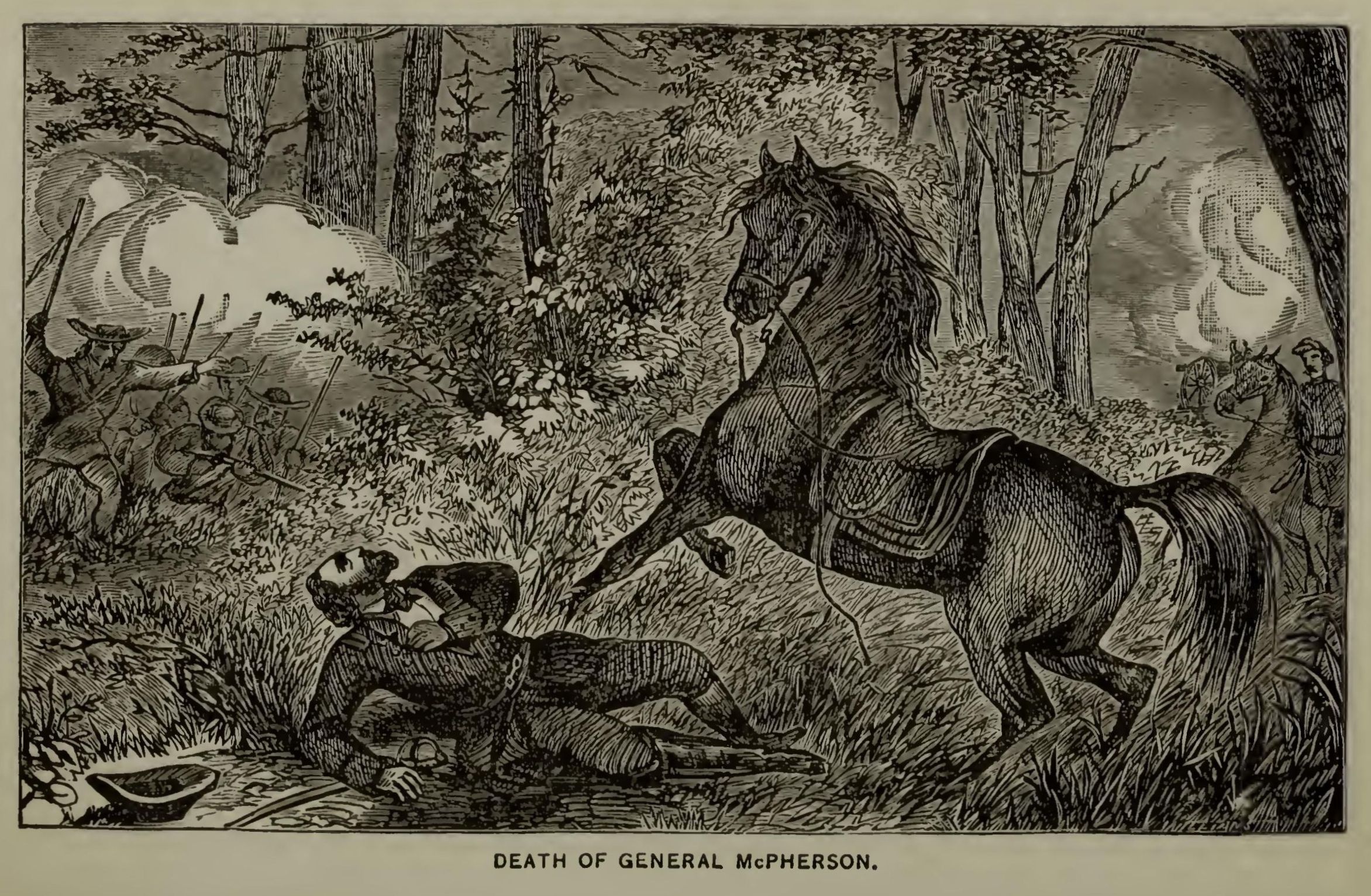 Fields made desolate by battles then are now waving with grain, covered by green swards, or bedecked with flowers; what were then hastily constructed earthworks are now grassy mounds; covered over with shrubbery; what then were rifle-pits are now pleasant pathways for man and beast; cities then burned, or otherwise made desolate through the ravages of war, have regained more than their former size, beauty, and commercial prosperity; plantations then laid waste have been restored to more than their former productiveness; wounds, ghastly, bloody wounds, then made by shot or shell, or sabre cut, are now so healed that even the cicatrices are scarcely observable; and, but for vacant chairs in many households, and too well-filled cemeteries at Arlington Heights, at Gettysburg, and all over the land, it would be difficult for us now to realize that a terrible, desolating war had swept over this country within so short a time as eighteen years.