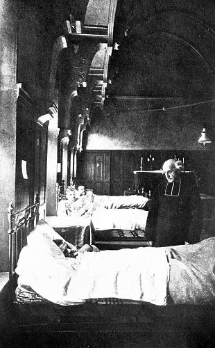 The room, which was lofty, but not well lit up, except at the stage end, where there was but a single large window, had been freshly painted white. The beds were ranged all round, and a double row down the centre.